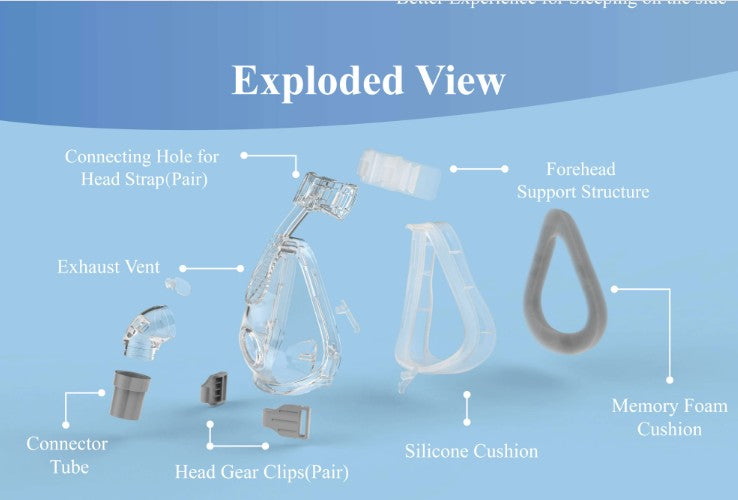Cpap mask with memory foam edging on soft sealing colicine mask. Memory foam is known for its ability to contour to the shape of your head and neck, providing excellent support and pressure relief. The shredded nature of the foam allows it to mold more precisely to your body's unique shape, distributing weight evenly